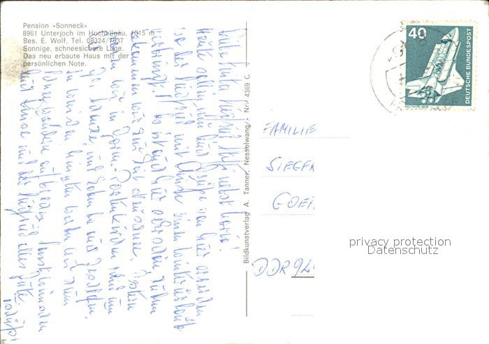 72378639 alte Postkarte Unterjoch Pension Sonneck postalisch gelaufen Erhaltung siehe scans KatCode: 11110009780123
