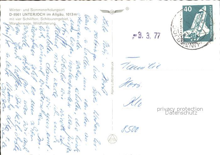 72398169 alte Postkarte Unterjoch postalisch gelaufen Erhaltung siehe scans KatCode: 11110009780123