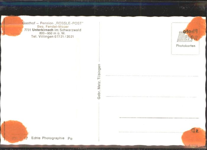 40807442 Unterkirnach Gasthof Pension Rössle-Post KatCode 11110008326065