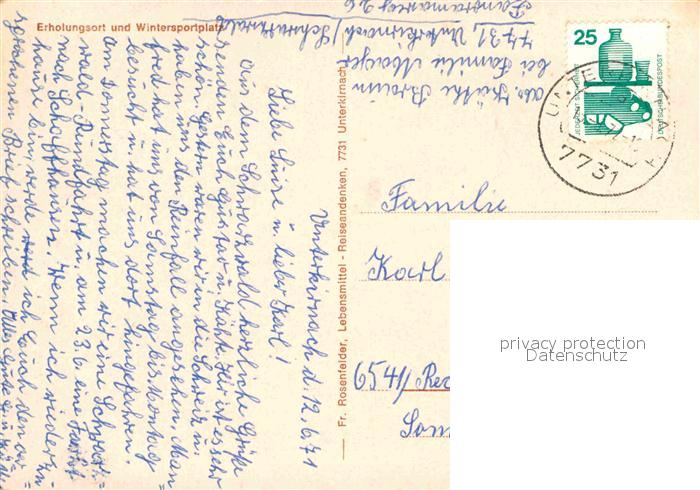 72656795 alte Postkarte Unterkirnach Kirche Gasthaus postalisch gelaufen Erhaltung siehe scans [AndreD76] KatCode: 11110008326065
