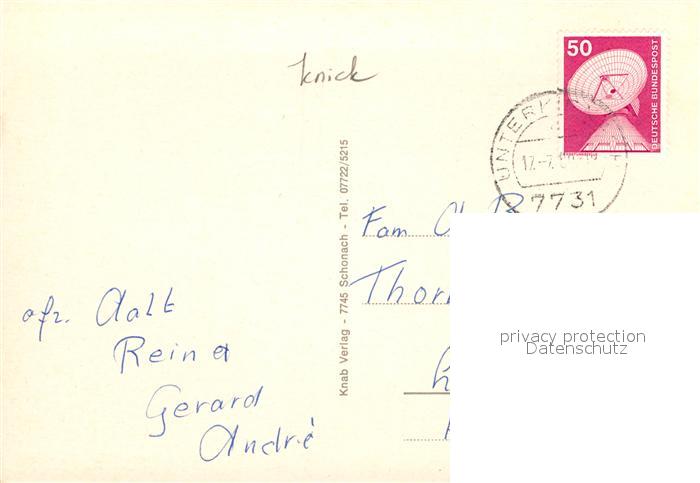 72928613 alte Postkarte Unterkirnach Panorama Kirche postalisch gelaufen Erhaltung siehe scans [WerneD78] KatCode: 11110008326065