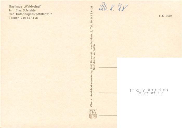 73645941 Unterlangenstadt Gasthaus Waldeslust Restaurant Terrasse postalisch nicht gelaufen Erhaltung siehe scans [FriedD77] KatCode: 11110009478155