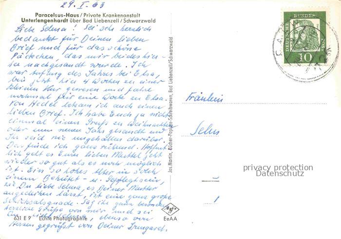74141989 alte Postkarte Unterlengenhardt Bad Liebenzell BW Paracelsus Haus Private Krankenanstalt postalisch gelaufen Erhaltung siehe scans [SanaeD93] KatCode: 11110008235008