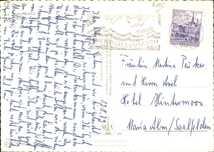 71484262 alte Postkarte Unterleutasch Gasthof Muehle postalisch gelaufen Erhaltung siehe scans KatCode: 11390