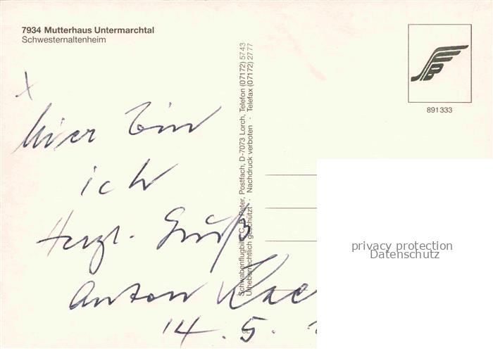 74051010 Untermarchtal Donau BW Mutterhaus Schwesternaltenheim postalisch nicht gelaufen Fliegeraufnahme Erhaltung siehe scans [FriedD77] KatCode: 11110008425123