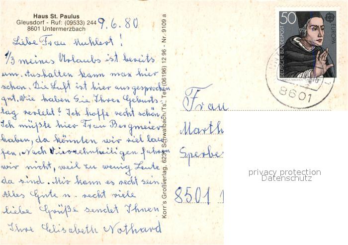 73026234 alte Postkarte Untermerzbach Haus St. Paulus postalisch gelaufen Erhaltung siehe scans [PaolaD17] KatCode: 11110009674210