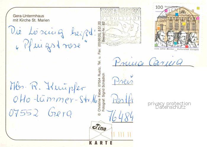 72720661 alte Postkarte Untermhaus Gera Kirche Sankt Marien postalisch gelaufen Erhaltung siehe scans [KathaD79] KatCode: 11110016052000
