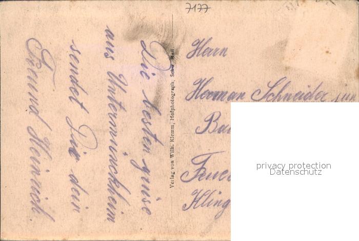 31728052 alte Postkarte Untermuenkheim Kirche Pfarrhaus Brueckenpartie postalisch gelaufen Erhaltung siehe scans KatCode: 11110008127086
