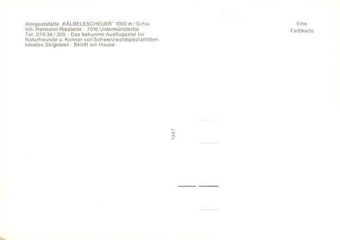 73934586 Untermuenstertal Almgaststaette Kaelbelescheuer postalisch nicht gelaufen Erhaltung siehe scans [WerneD78] KatCode: 11110008315130