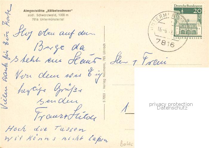 73648903 alte Postkarte Untermuenstertal Almgaststaette Kaelbelescheuer Landwirtschaftspanorama Schwarzwald postalisch gelaufen Erhaltung siehe scans [FriedD77] KatCode: 11110008315130
