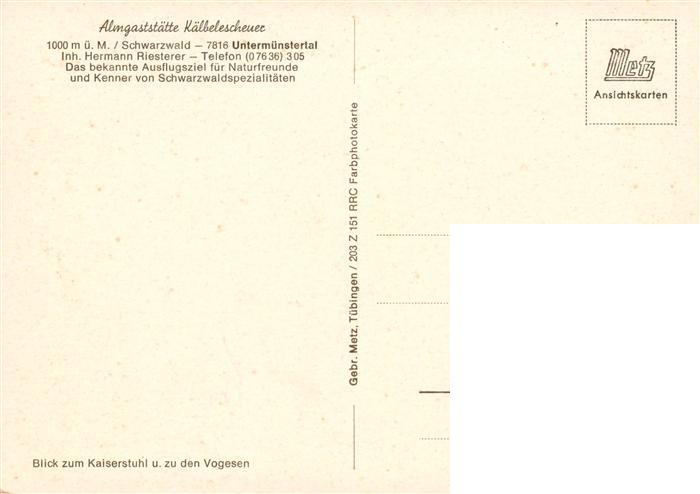 73934765 Untermuenstertal Almgaststaette Kaelbelescheuer mit Belchenblick Kaiserstuhl und Vogesen postalisch nicht gelaufen Fliegeraufnahme Erhaltung siehe scans [WerneD78] KatCode: 11110008315130