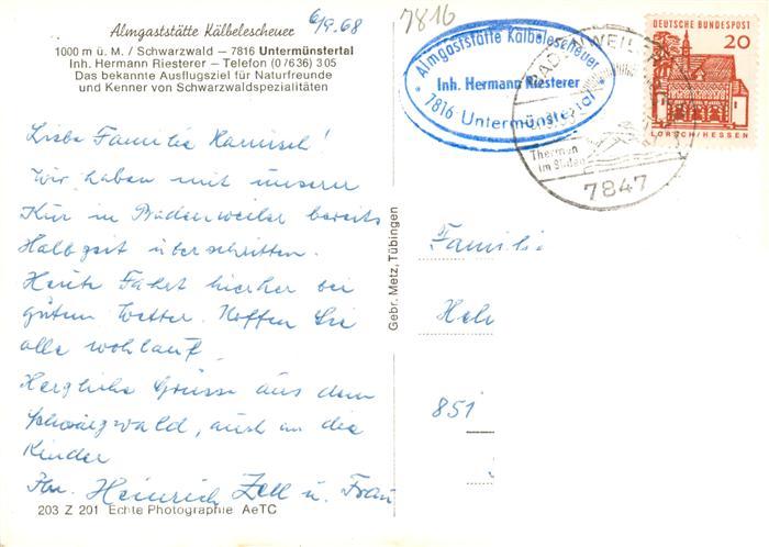 73934761 alte Postkarte Untermuenstertal Almgaststaette Kaelbelescheuer mit Belchenblick postalisch gelaufen Erhaltung siehe scans [WerneD78] KatCode: 11110008315130