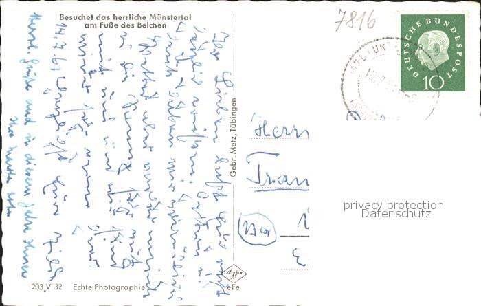 71912817 alte Postkarte Untermuenstertal Blick vom Belchen postalisch gelaufen Erhaltung siehe scans KatCode: 11110008315130