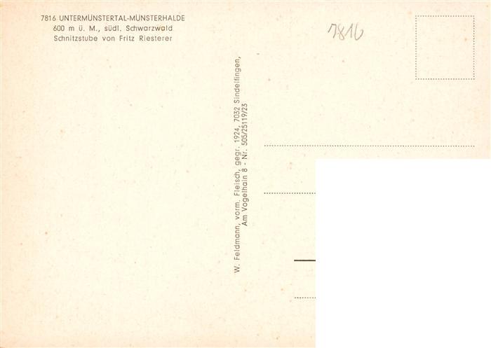 73934759 Untermuenstertal Brunnen Schnitzerstube von Fritz Riesterer Kaminzimmer Gastraum Garten postalisch nicht gelaufen Erhaltung siehe scans [WerneD78] KatCode: 11110008315130