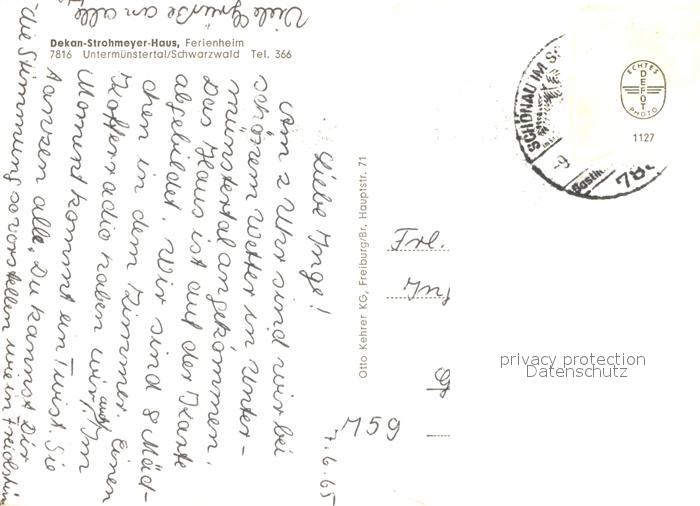 73687624 Untermuenstertal Dekan Strohmeyer Haus postalisch nicht gelaufen Erhaltung siehe scans [WerneD78] KatCode: 11110008315130