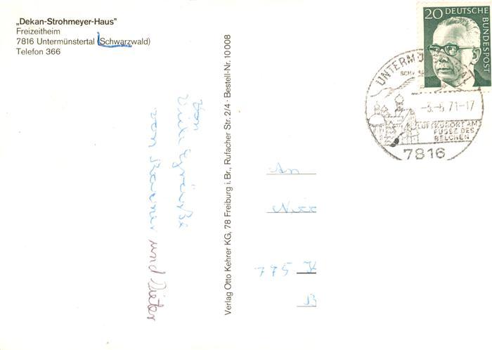 73934585 alte Postkarte Untermuenstertal Dekan Strohmeyer Haus Brunnen postalisch gelaufen Erhaltung siehe scans [WerneD78] KatCode: 11110008315130