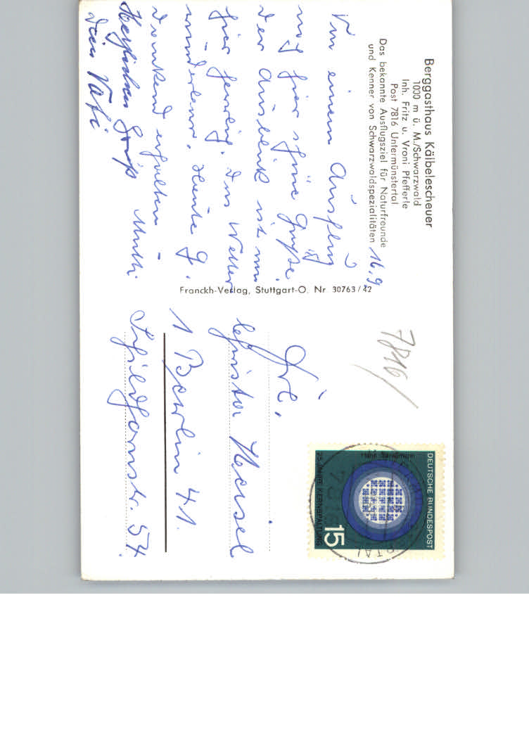 31152766 Untermuenstertal Gasthaus Kaelbelescheuer postalisch nicht gelaufen KatCode: 11110008315130