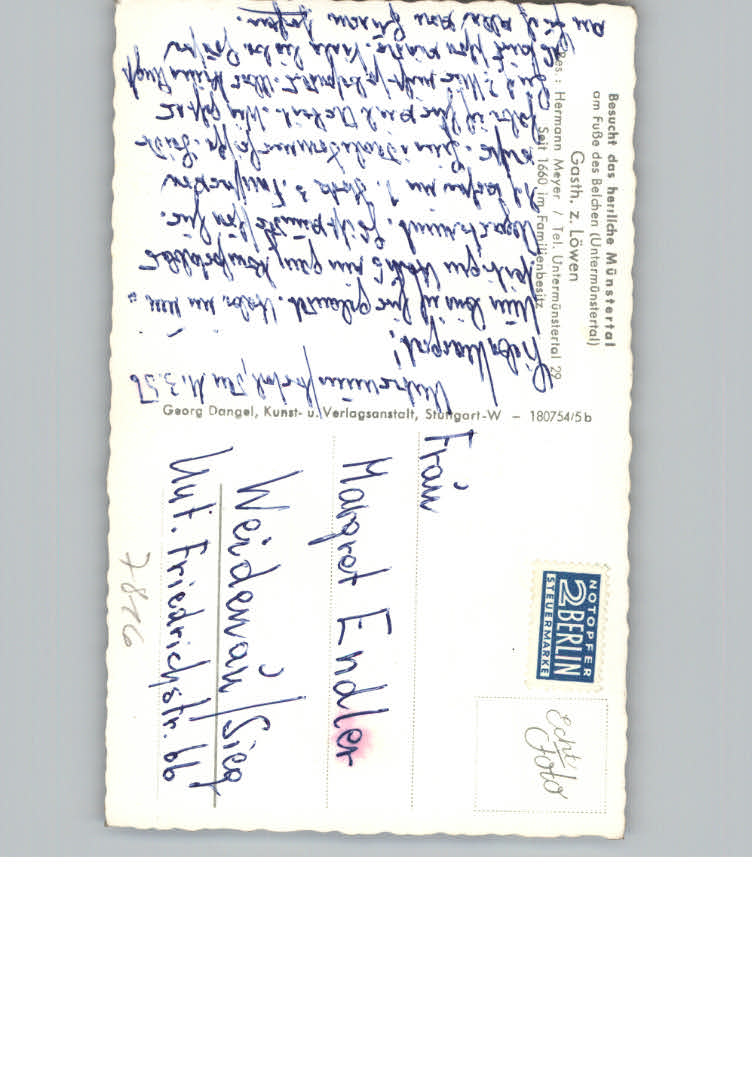 31153782 Untermuenstertal Gasthaus zum Loewen postalisch nicht gelaufen KatCode: 11110008315130