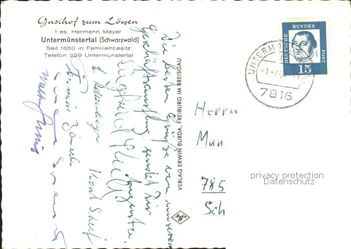 71935255 alte Postkarte Untermuenstertal Gasthof zum Loewen postalisch gelaufen Erhaltung siehe scans KatCode: 11110008315130