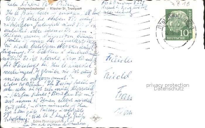 71912822 alte Postkarte Untermuenstertal mit Kloster St Trudpert postalisch gelaufen Erhaltung siehe scans KatCode: 11110008315130