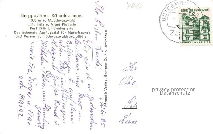 74042808 Untermuenstertal Muenstertal BW Almgststaette Kaelbelescheuer Panorama postalisch gelaufen Erhaltung siehe scans [WerneD78] alte Postkarte Wern Katcode 11110008315130