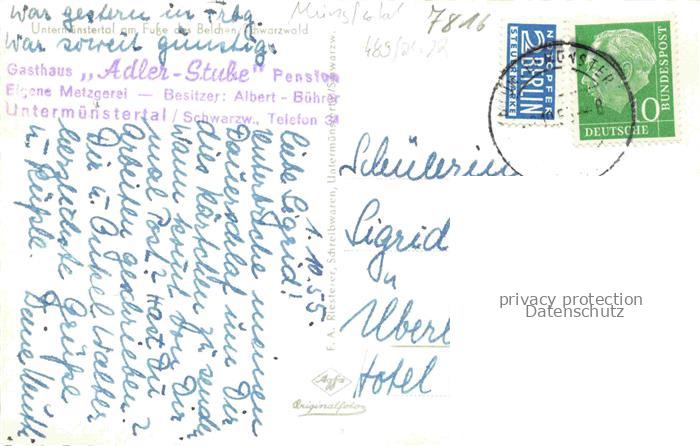 74042809 Untermuenstertal Muenstertal BW Fliegeraufnahme mit Belchen postalisch gelaufen Erhaltung siehe scans [WerneD78] alte Postkarte Wern Katcode 11110008315130