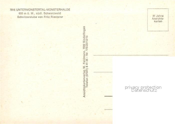73030516 Untermuenstertal Schnitzerstube postalisch nicht gelaufen Erhaltung siehe scans [KathaD81] KatCode: 11110008315130