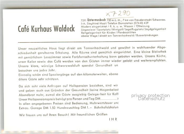 43273428 Untermusbach Freudenstadt Cafe Kurhaus Waldeck postalisch nicht gelaufen Werbekarte (keine Postkarte) Erhaltung siehe scans [KathaD81] KatCode: 11110008237028
