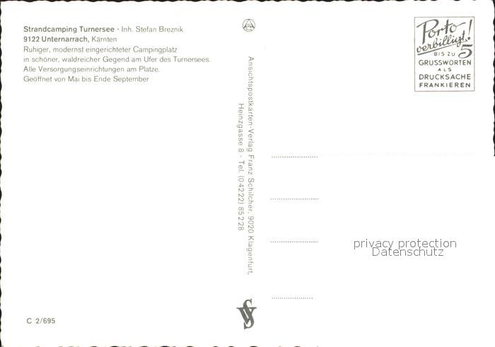 72035367 Unternarrach Strandcamping Turnersee postalisch nicht gelaufen Erhaltung siehe scans KatCode: 11390213020813
