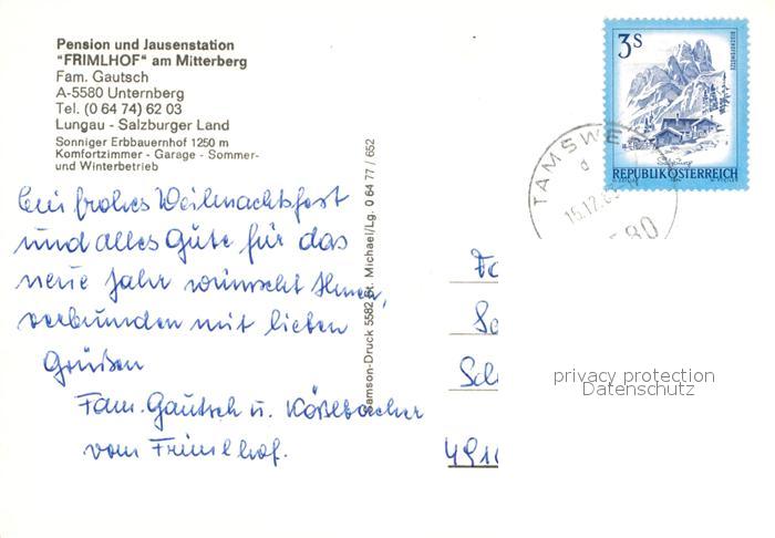 12975287 alte Postkarte Unternberg Salzburg Jausenstation Frimlhof postalisch gelaufen Erhaltung siehe scans [NatalD47] KatCode: 11390321050513