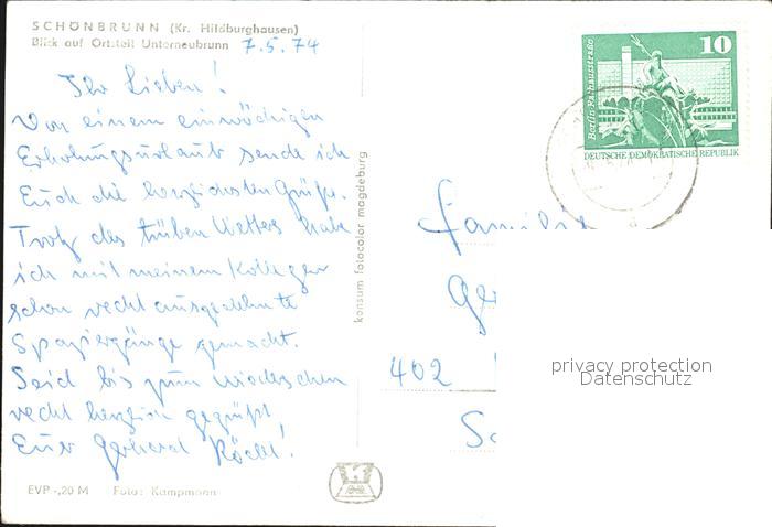 72505813 alte Postkarte Unterneubrunn Thueringen postalisch gelaufen Erhaltung siehe scans KatCode: 11110016069042