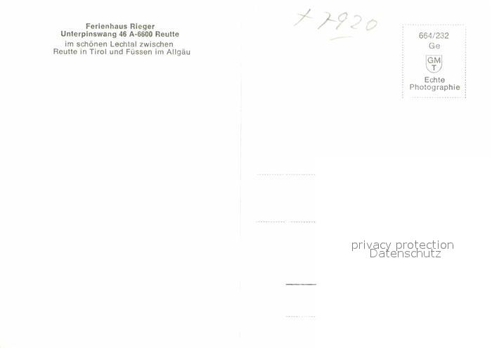 12737860 Unterpinswang Ferienhaus Rieger postalisch nicht gelaufen Erhaltung siehe scans [AndreD76] KatCode: 11390331070828