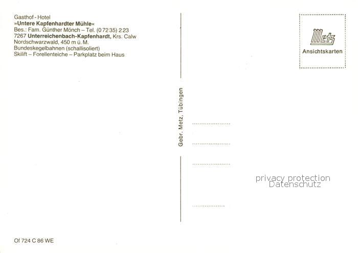 73046838 alte Postkarte Unterreichenbach Calw Gasthaus Pension Karpfenhardter Muehle Winter postalisch gelaufen Erhaltung siehe scans [KathaD81] KatCode: 11110008235073