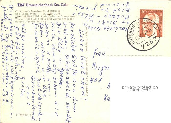 72503950 alte Postkarte Unterreichenbach Calw Gasthaus Pension Zum Roessle postalisch gelaufen Erhaltung siehe scans KatCode: 11110008235073