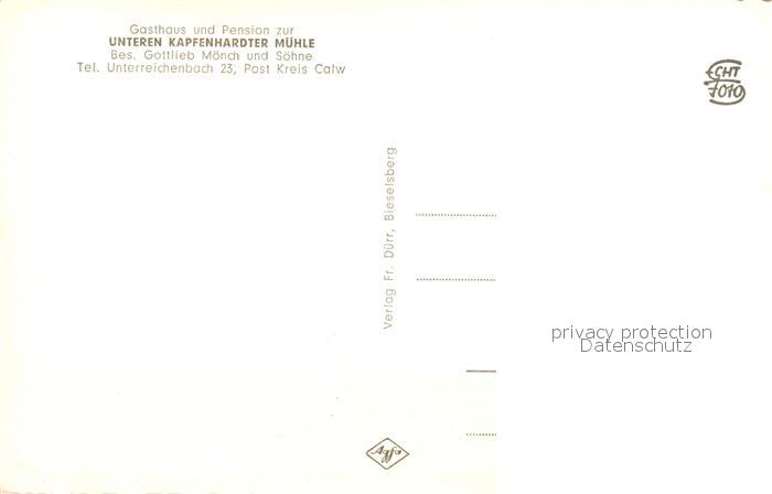 72982037 Unterreichenbach Calw Gasthaus Pension zur Unteren Kapfenhardter Muehle postalisch nicht gelaufen Erhaltung siehe scans [WerneD78] KatCode: 11110008235073
