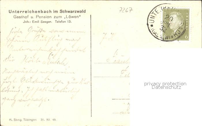32212318 alte Postkarte Unterreichenbach Calw Gasthof Pension zum Loewen postalisch gelaufen Erhaltung siehe scans KatCode: 11110008235073