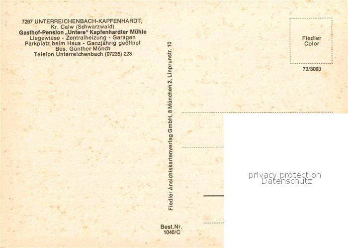 72667647 Unterreichenbach Calw Gasthof Untere Kapfenhardter Muehle postalisch nicht gelaufen Erhaltung siehe scans [AndreD76] KatCode: 11110008235073