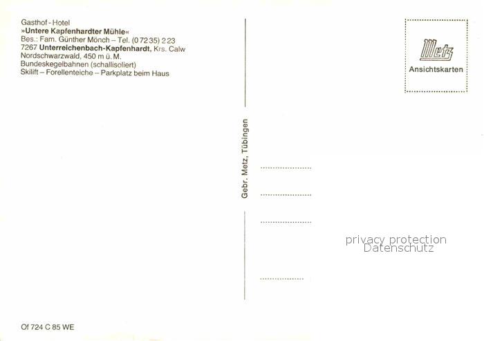 72854741 Unterreichenbach Calw Gasthof Untere Kapfenhardter Muehle postalisch nicht gelaufen Erhaltung siehe scans [AndreD76] KatCode: 11110008235073