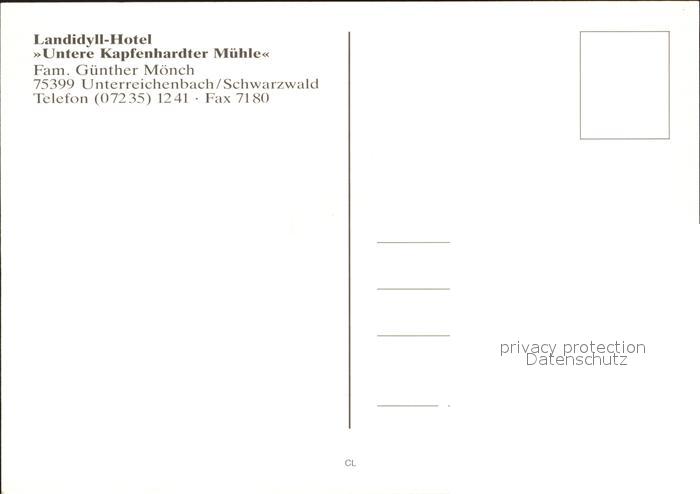 72369237 Unterreichenbach Calw Hotel Untere Karpfenhardter Muehle postalisch nicht gelaufen Erhaltung siehe scans KatCode: 11110008235073