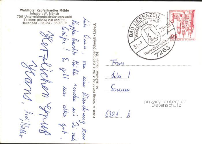 alte Postkarte Unterreichenbach Calw Waldhotel Kapfenhardter Muehle postalisch gelaufen Erhaltung siehe scans