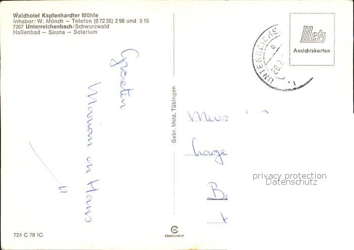 72435151 alte Postkarte Unterreichenbach Calw Waldhotel Kapfenhardter Muehle postalisch gelaufen Erhaltung siehe scans KatCode: 11110008235073