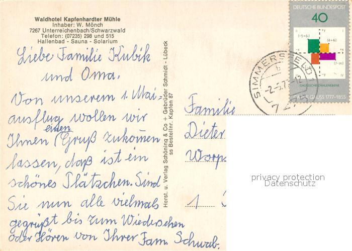 73641290 alte Postkarte Unterreichenbach Calw Waldhotel Kapfenhardter Muehle Gastraeume postalisch gelaufen Erhaltung siehe scans [WerneD78] KatCode: 11110008235073