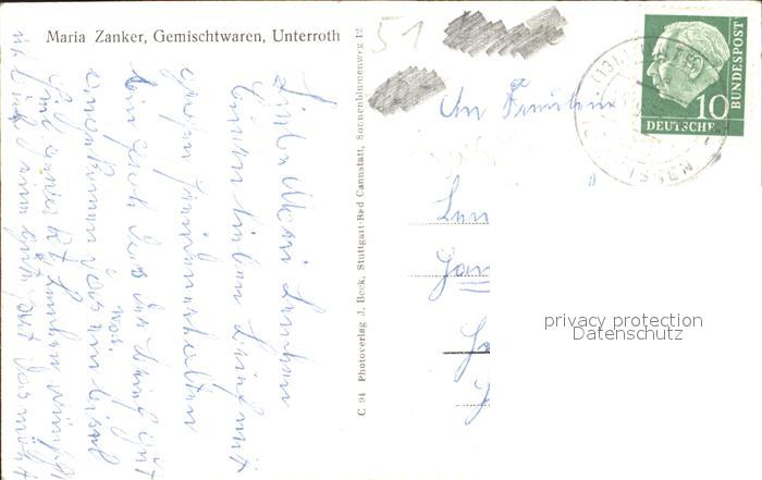 32030072 alte Postkarte Unterroth Kirche Maria Zanker Gemischtwaren postalisch gelaufen Erhaltung siehe scans KatCode: 11110009775161