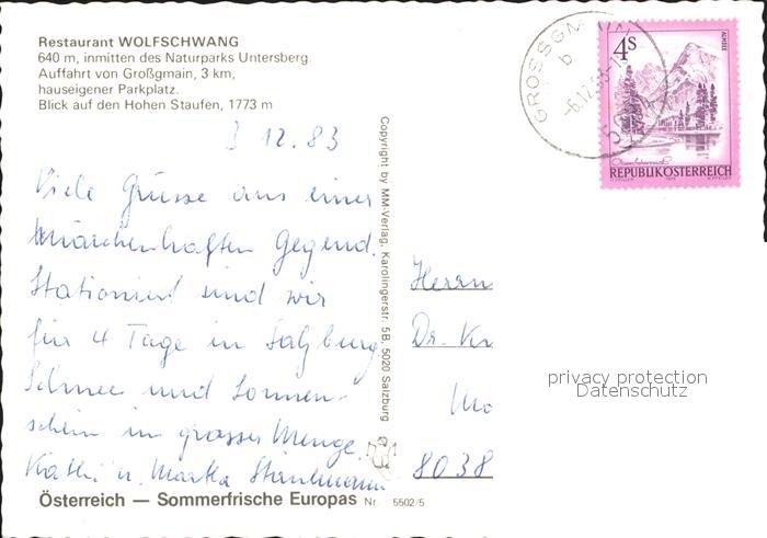 71952510 alte Postkarte Untersberg Restaurant Wolfschwang Naturpark Hohen Staufen postalisch gelaufen Erhaltung siehe scans KatCode: 11390323050101
