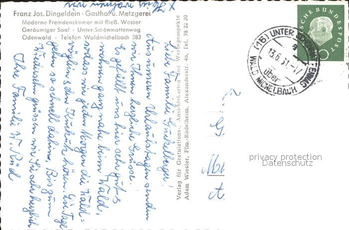 71918587 alte Postkarte Unterschoenmattenwag Franz Jos. Dingeldein Gasthof postalisch gelaufen Erhaltung siehe scans KatCode: 11110006431021