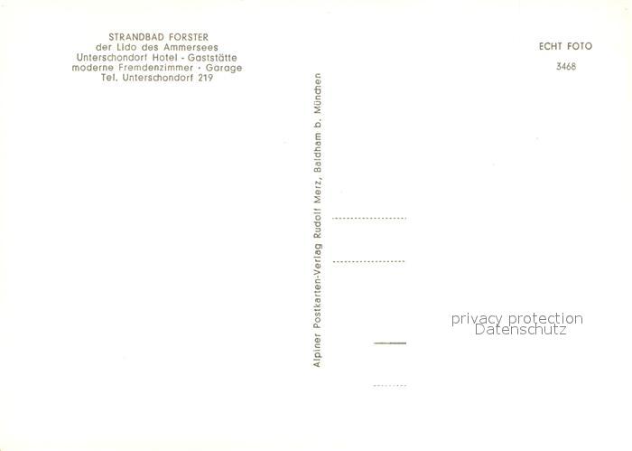 33659950 Unterschondorf Strandbad Forster am Ammersee Hotel Gaststaette Unterschondorf postalisch nicht gelaufen Erhaltung siehe scans [WerneD78] KatCode: 11110009181139