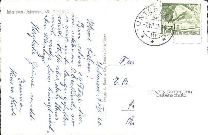 12055493 alte Postkarte Unterseen Marktplatz postalisch gelaufen Erhaltung siehe scans KatCode: 11470060175302