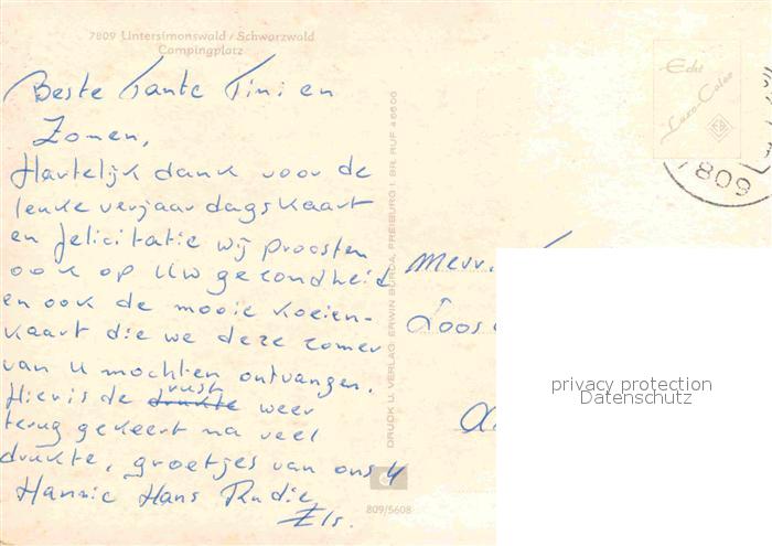 72845270 alte Postkarte Untersimonswald Campingplatz postalisch gelaufen Erhaltung siehe scans [NatalD47] KatCode: 11110008316042