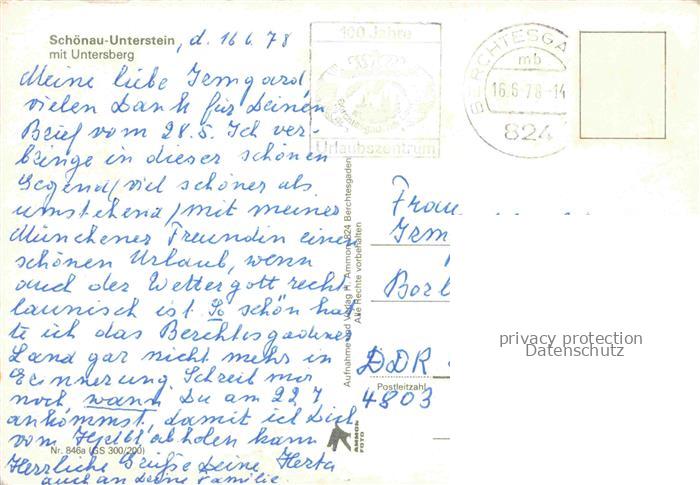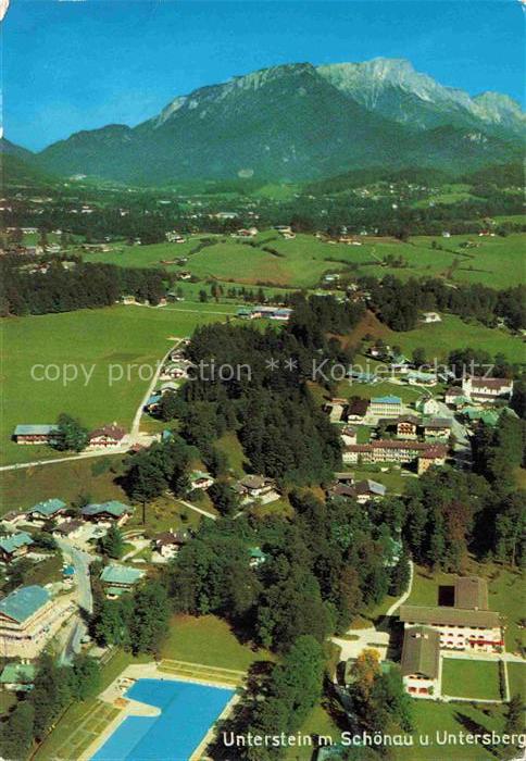 74100499 alte Postkarte Unterstein Schoenau Berchtesgaden Bayern Panorama mit Blick gegen Unterstein postalisch gelaufen Fliegeraufnahme Erhaltung siehe scans [FriedD77] KatCode: 11110009172132