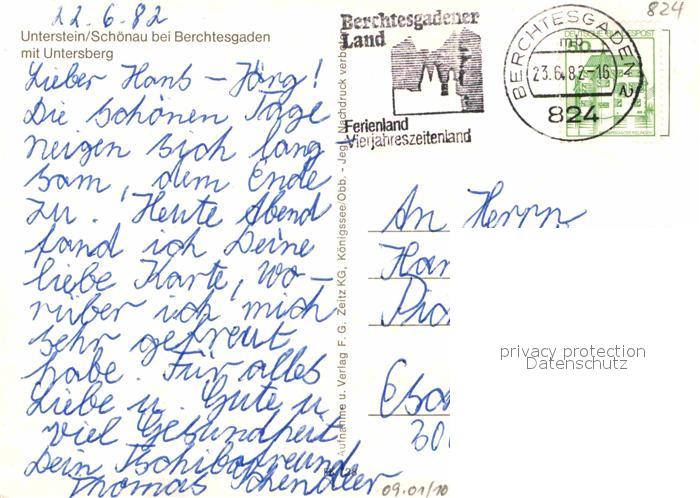 72912175 alte Postkarte Unterstein Schoenau Ortspartie mit Untersberg postalisch gelaufen Erhaltung siehe scans [LiesaD40] KatCode: 11110009172132